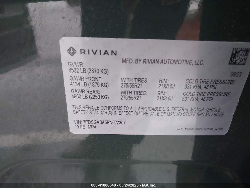 2023 RIVIAN R1S | 7PDSGABA5PN022307