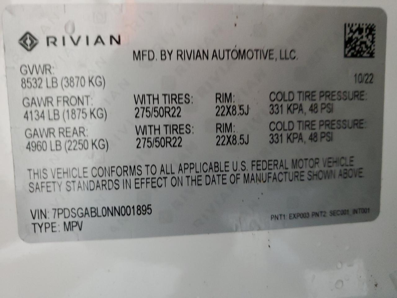 2022 RIVIAN R1S | 7PDSGABL0NN001895