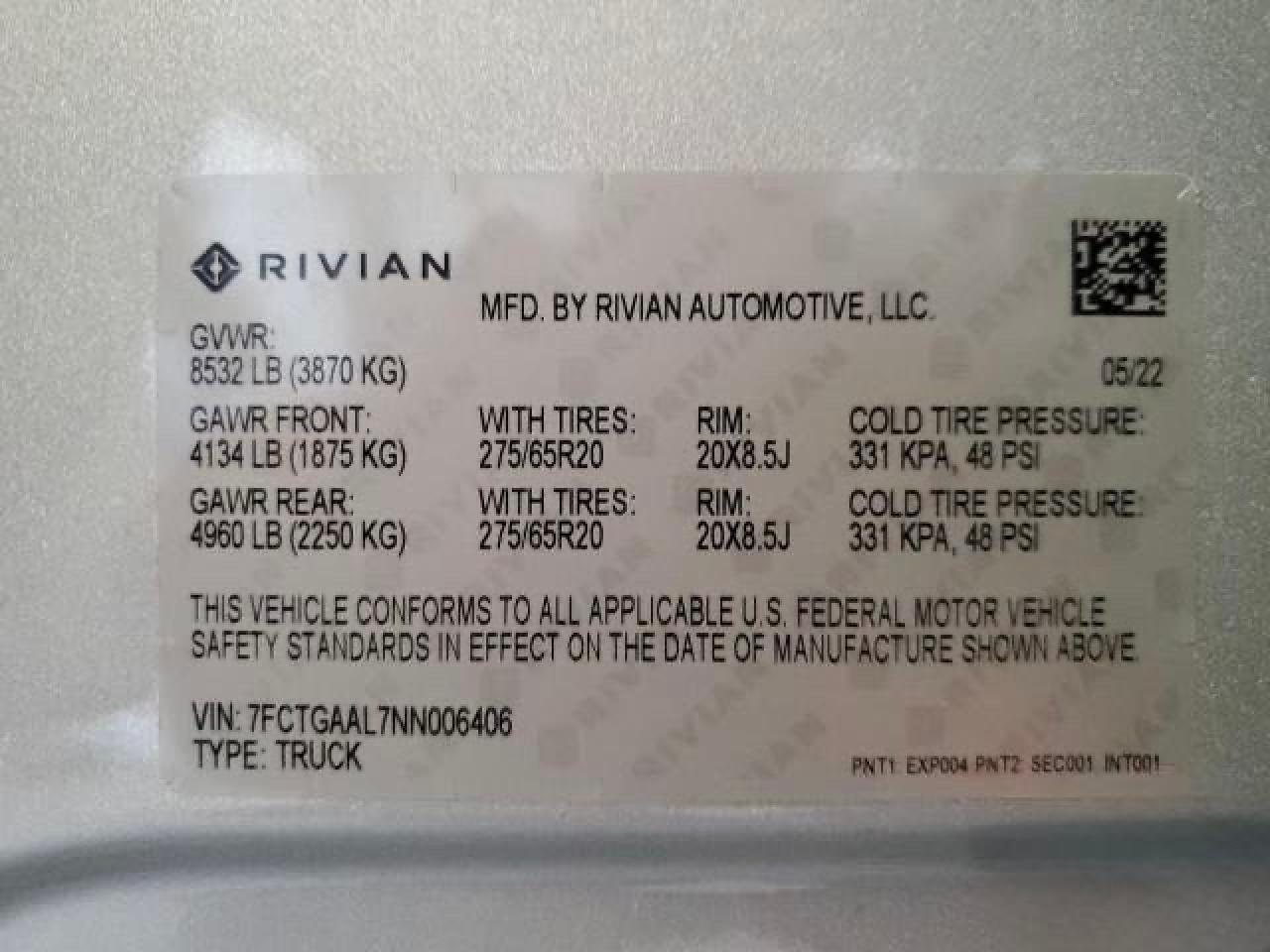 2022 RIVIAN R1T | 7FCTGAAL7NN006406