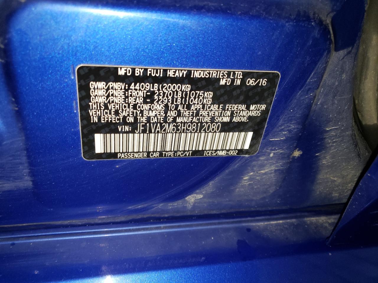2017 SUBARU WRX | JF1VA2M63H9812080