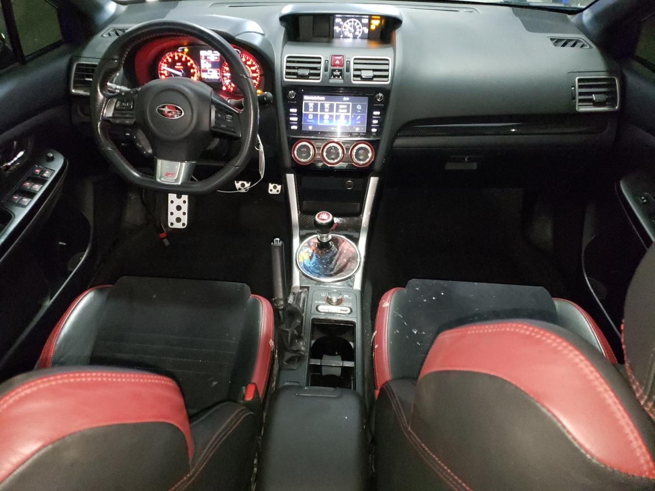 Inside, the WRX featured dark, motorsport-inspired cabins with heavy emphasis on black fabric or leather and red contrast stitching. Base models came with durable cloth upholstery, while Premium and Limited trims introduced leather-wrapped seats, steering wheel, and shift knob. The WRX STI models added Ultrasuede inserts, embroidered logos, and more aggressive bolstering for spirited driving. The red-themed interior accents extended to the gauge cluster, HVAC dials, and ambient lighting in higher trims. Carbon fiber-style dash appliqués and silver metallic trim gave the cabin a rugged yet technical aesthetic, staying true to the performance focus of the model.