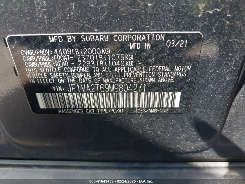 2021 SUBARU WRX | JF1VA2T69M9804271
