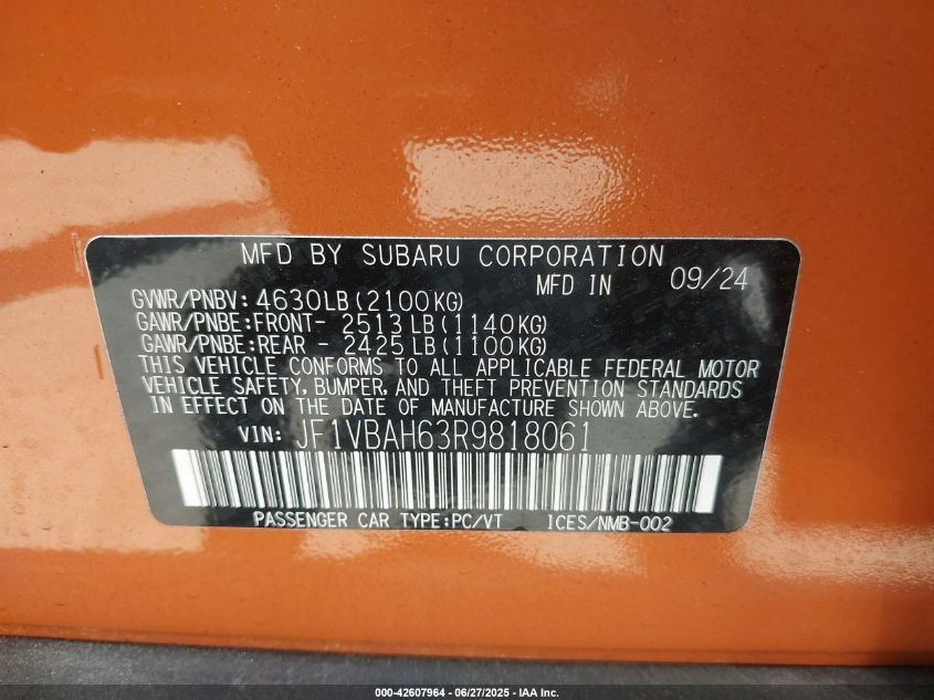 2024 SUBARU WRX | JF1VBAH63R9818061