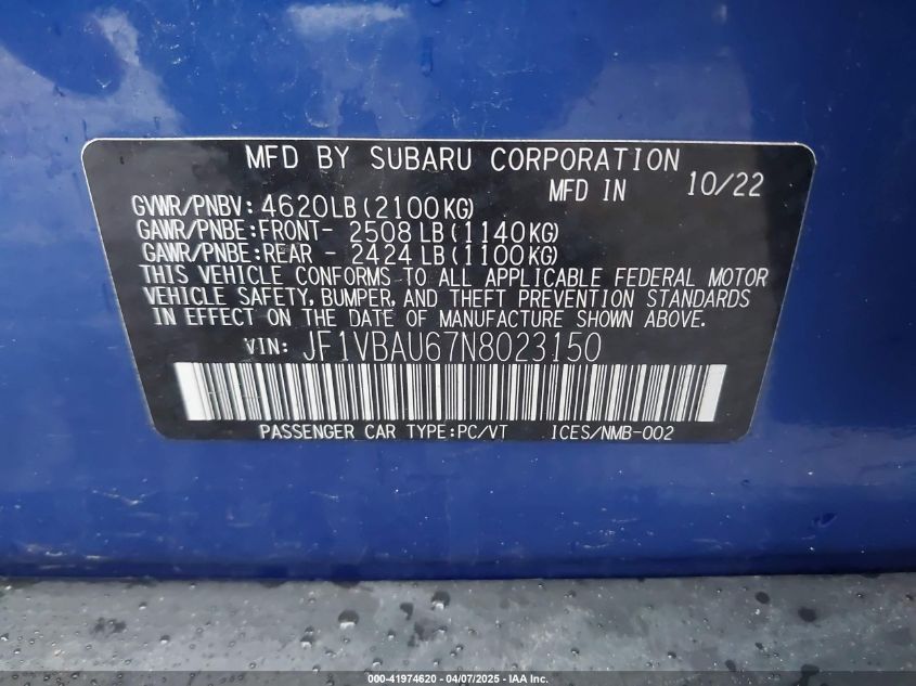 2022 SUBARU WRX | JF1VBAU67N8023150