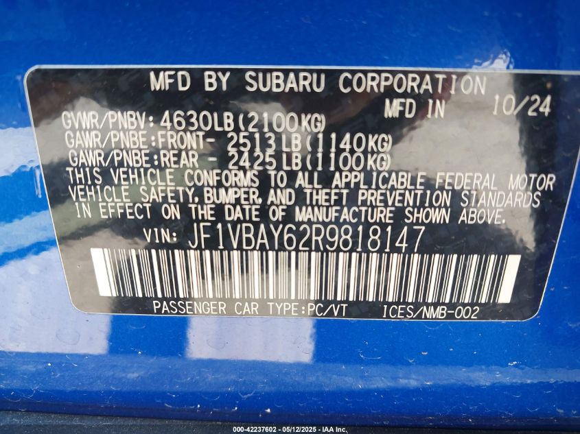 2024 SUBARU WRX | JF1VBAY62R9818147
