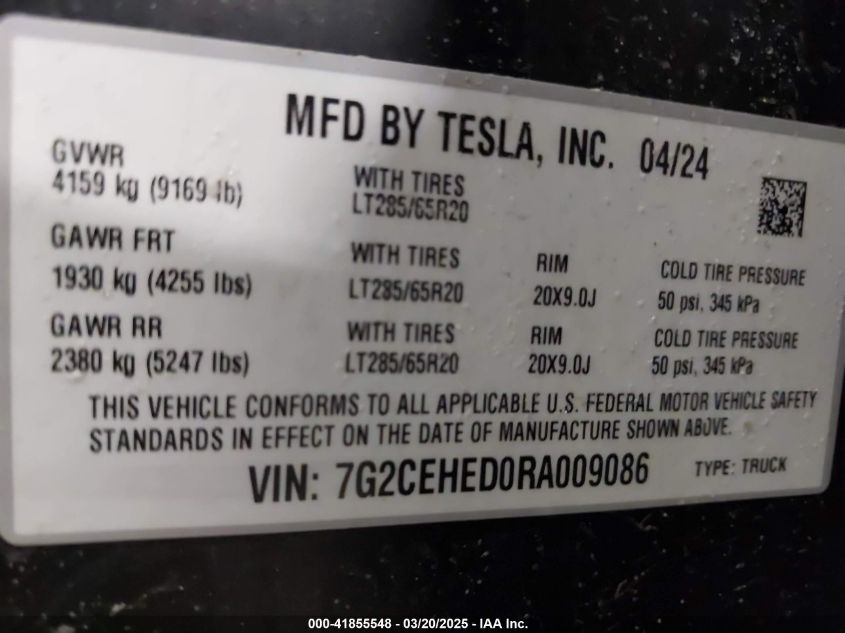 2024 TESLA CYBERTRUCK | 7G2CEHED0RA009086