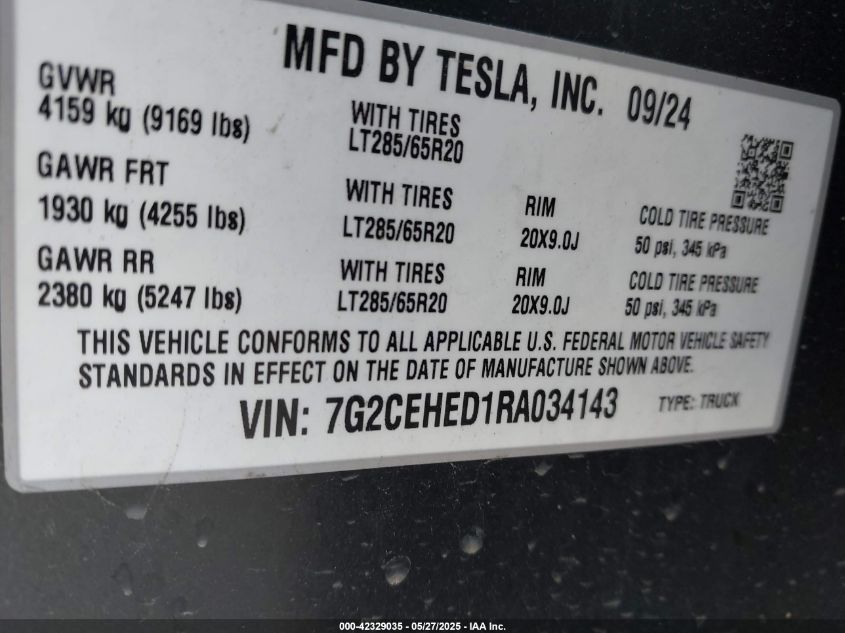 2024 TESLA CYBERTRUCK | 7G2CEHED1RA034143