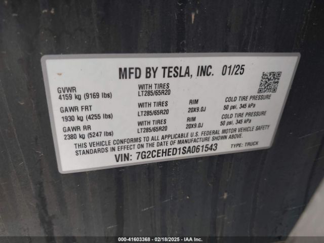 2025 TESLA CYBERTRUCK | 7G2CEHED1SA061543