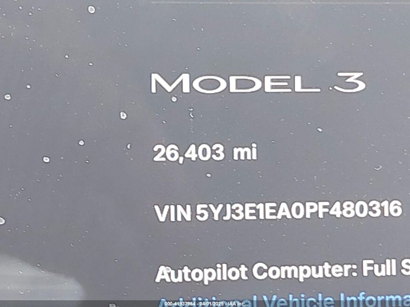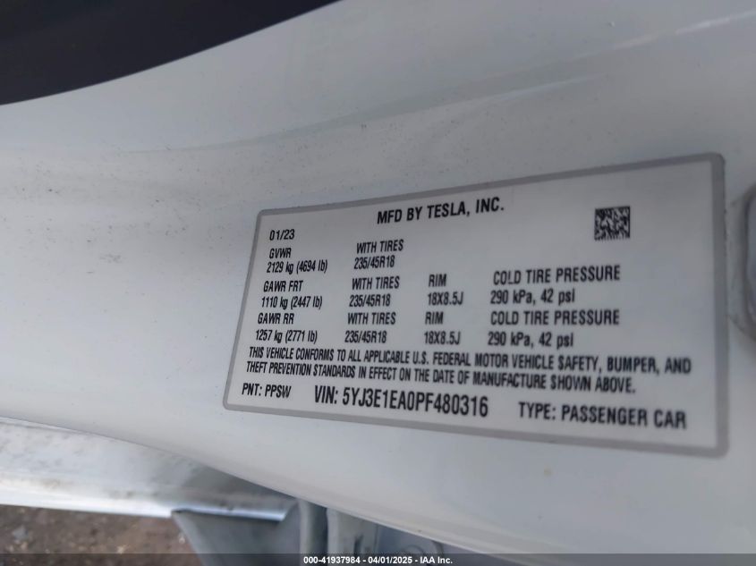2023 TESLA MODEL 3 | 5YJ3E1EA0PF480316