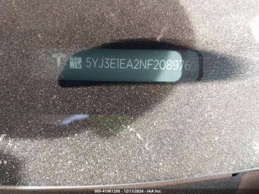 2022 TESLA MODEL 3 | 5YJ3E1EA2NF208976