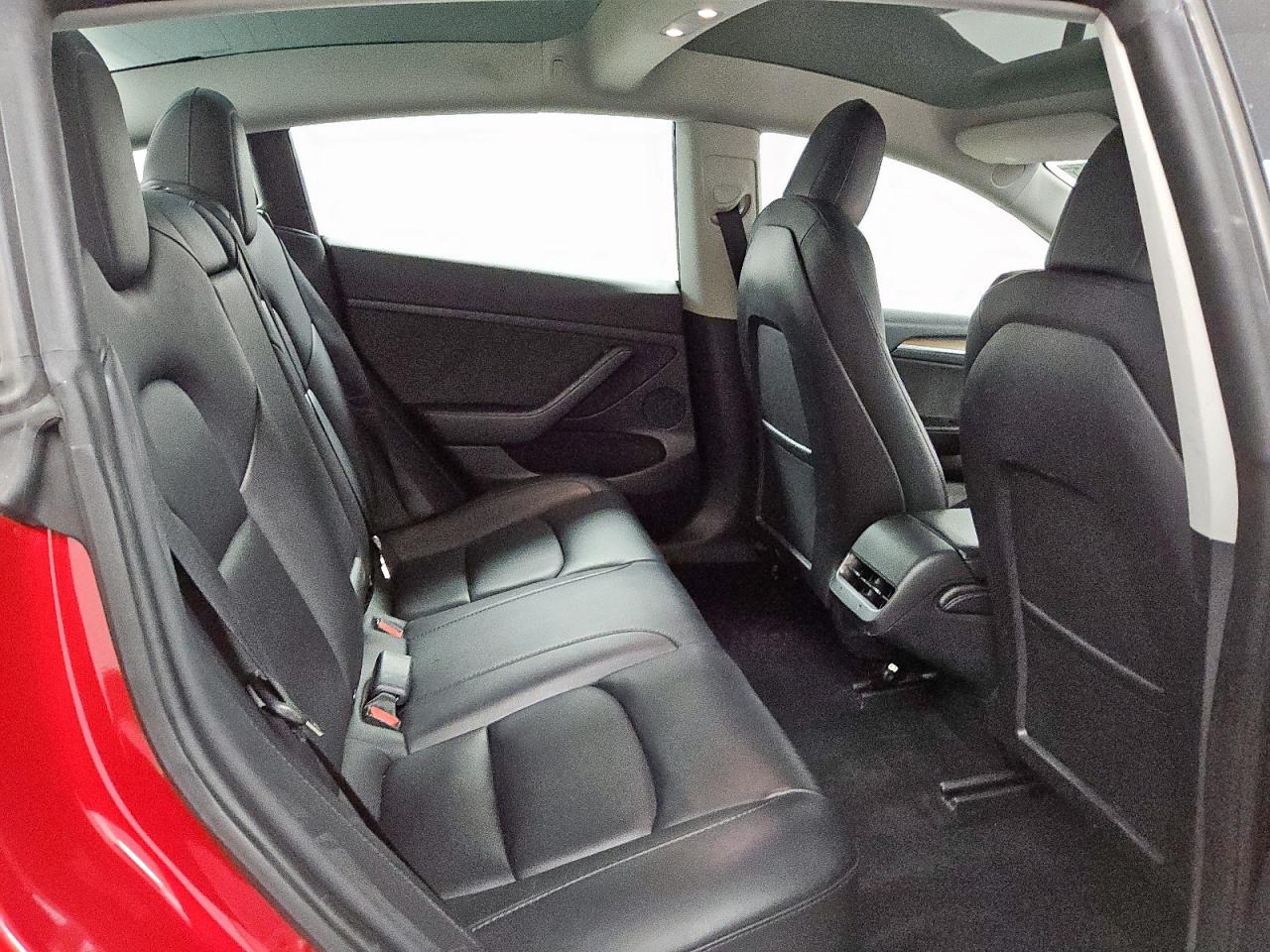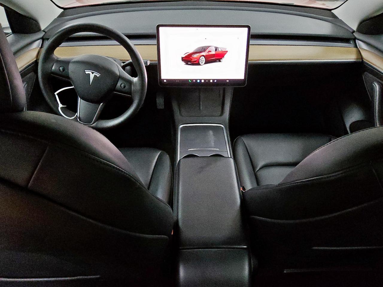 Inside, the Model 3 embraces a radically minimalist cabin, with virtually all controls accessed via the 15-inch central touchscreen. The base interior features Black synthetic leather upholstery with matte black trim, while the White Premium Interior option adds bright white vegan leather seats, white dashboard inserts, and additional ambient lighting. All materials are animal-free and sustainably sourced, aligning with Tesla’s ecological mission. The wood trim on the dash in earlier variants gives a natural contrast to the clean geometry, while newer versions also offer brushed metal or textile dash finishes depending on trim. Heated front and rear seats, a tinted glass roof, and HEPA air filtration add to the tech-forward luxury feel.