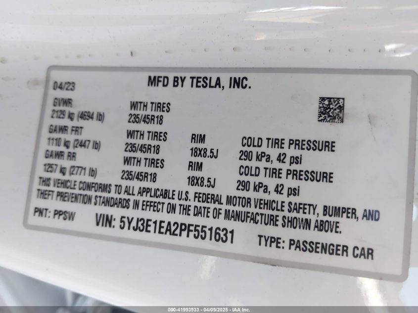 2023 TESLA MODEL 3 | 5YJ3E1EA2PF551631