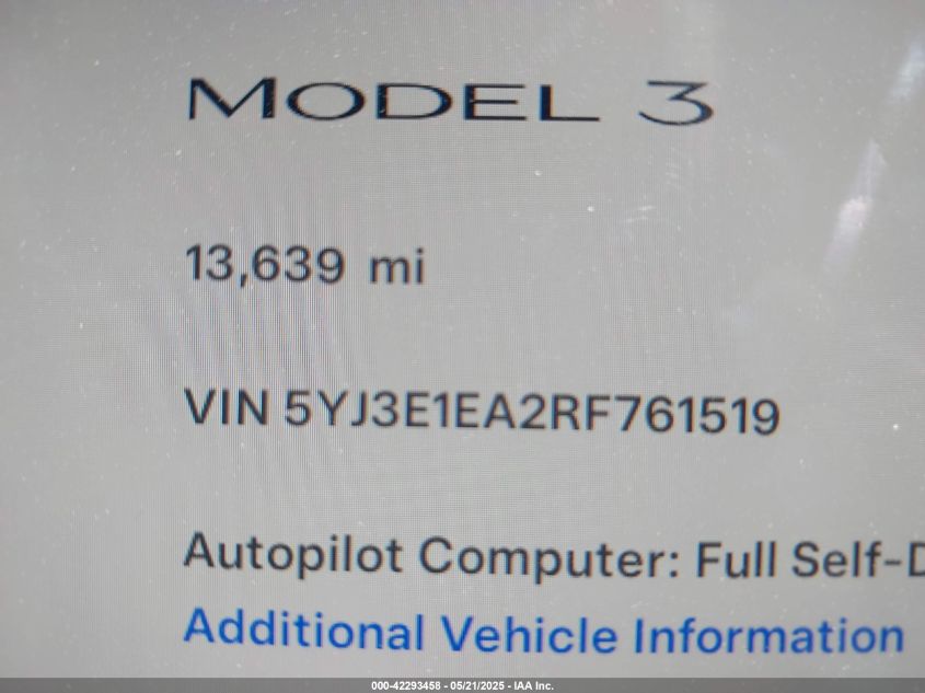 2024 TESLA MODEL 3 | 5YJ3E1EA2RF761519