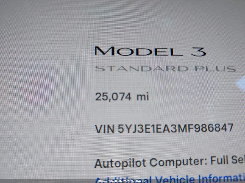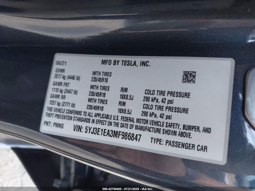 2021 TESLA MODEL 3 | 5YJ3E1EA3MF986847