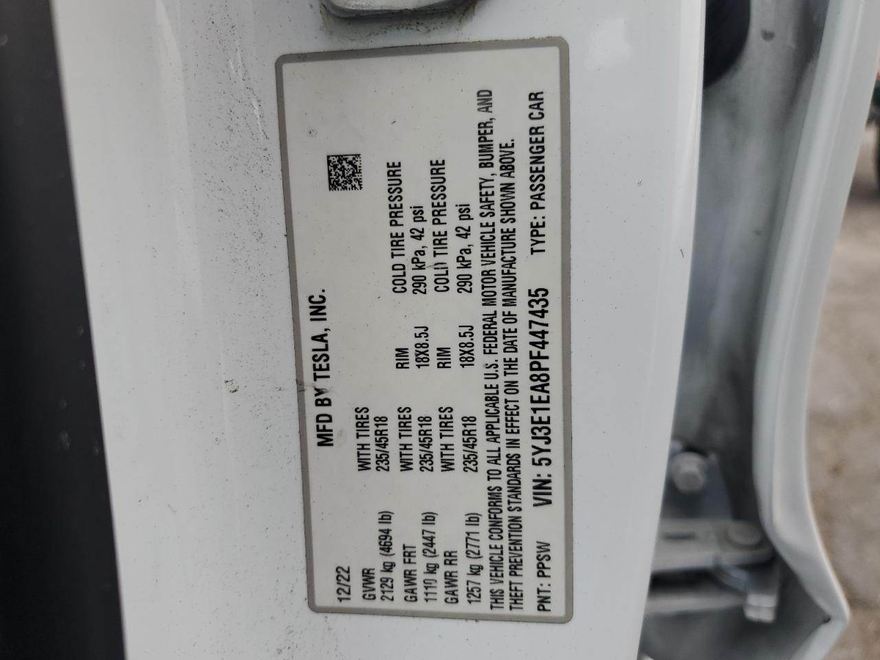 2023 TESLA MODEL 3 | 5YJ3E1EA8PF447435