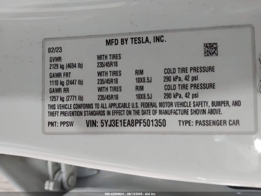 2023 TESLA MODEL 3 | 5YJ3E1EA8PF501350