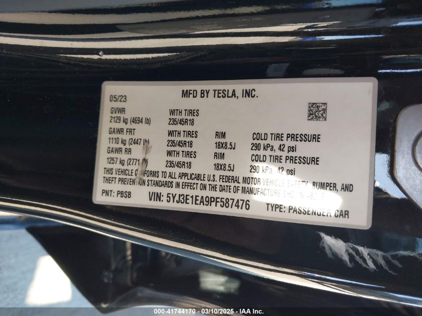 2023 TESLA MODEL 3 | 5YJ3E1EA9PF587476