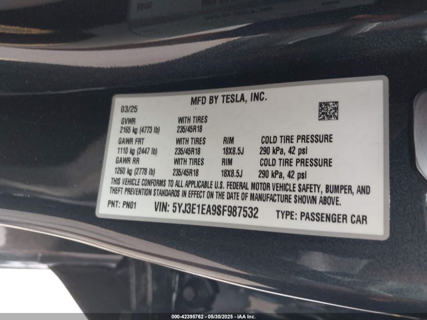 2025 TESLA MODEL 3 | 5YJ3E1EA9SF987532
