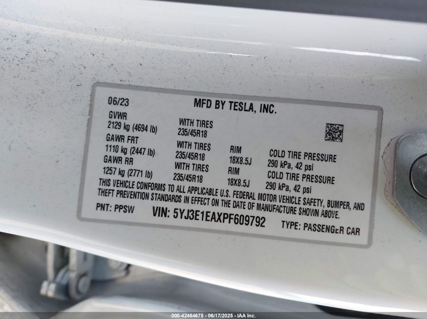 2023 TESLA MODEL 3 | 5YJ3E1EAXPF609792