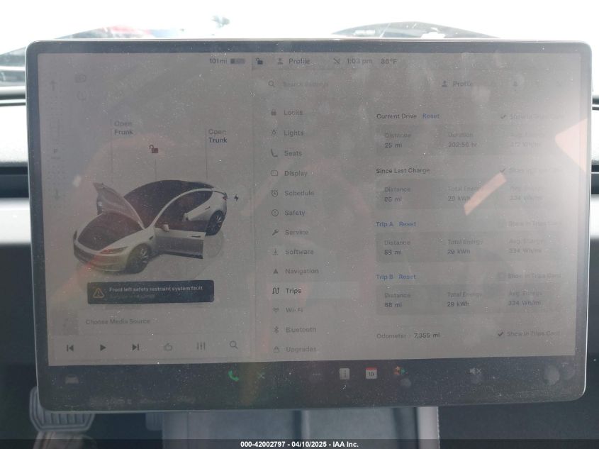 Inside, the Model 3 embraces a radically minimalist cabin, with virtually all controls accessed via the 15-inch central touchscreen. The base interior features Black synthetic leather upholstery with matte black trim, while the White Premium Interior option adds bright white vegan leather seats, white dashboard inserts, and additional ambient lighting. All materials are animal-free and sustainably sourced, aligning with Tesla’s ecological mission. The wood trim on the dash in earlier variants gives a natural contrast to the clean geometry, while newer versions also offer brushed metal or textile dash finishes depending on trim. Heated front and rear seats, a tinted glass roof, and HEPA air filtration add to the tech-forward luxury feel.