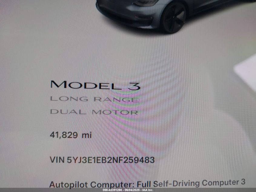 2022 TESLA MODEL 3 | 5YJ3E1EB2NF259483