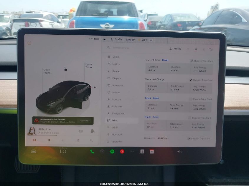 Inside, the Model 3 embraces a radically minimalist cabin, with virtually all controls accessed via the 15-inch central touchscreen. The base interior features Black synthetic leather upholstery with matte black trim, while the White Premium Interior option adds bright white vegan leather seats, white dashboard inserts, and additional ambient lighting. All materials are animal-free and sustainably sourced, aligning with Tesla’s ecological mission. The wood trim on the dash in earlier variants gives a natural contrast to the clean geometry, while newer versions also offer brushed metal or textile dash finishes depending on trim. Heated front and rear seats, a tinted glass roof, and HEPA air filtration add to the tech-forward luxury feel.
