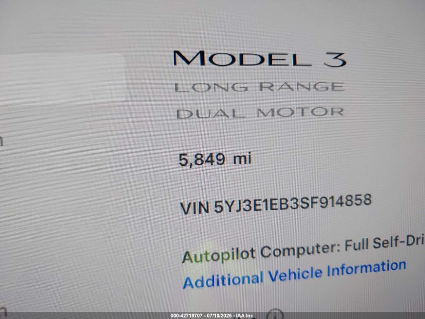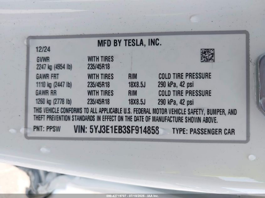 2025 TESLA MODEL 3 | 5YJ3E1EB3SF914858