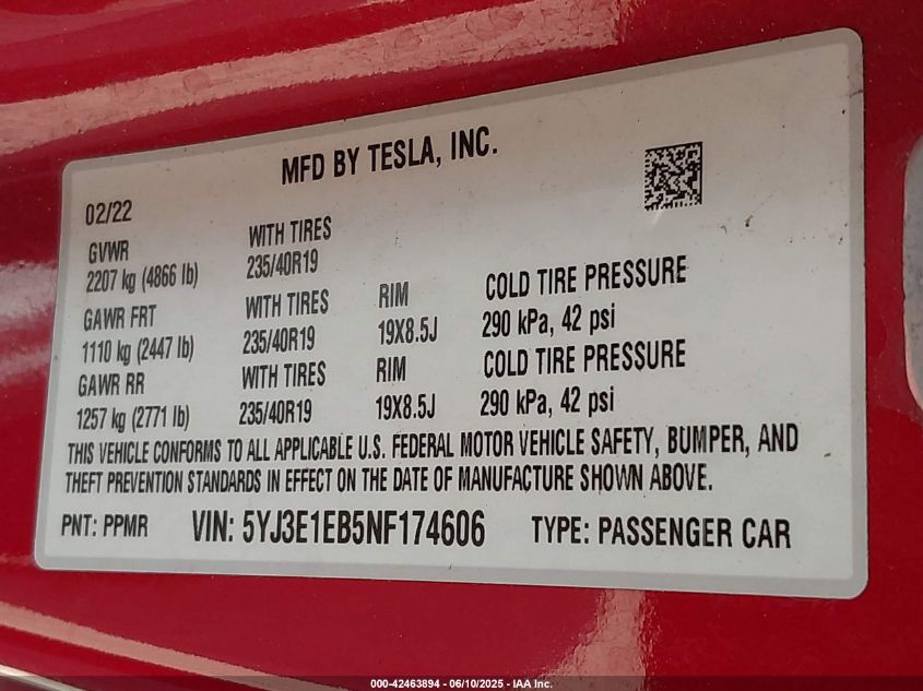 2022 TESLA MODEL 3 | 5YJ3E1EB5NF174606