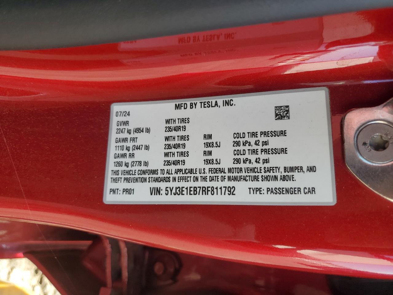 2024 TESLA MODEL 3 | 5YJ3E1EB7RF811792