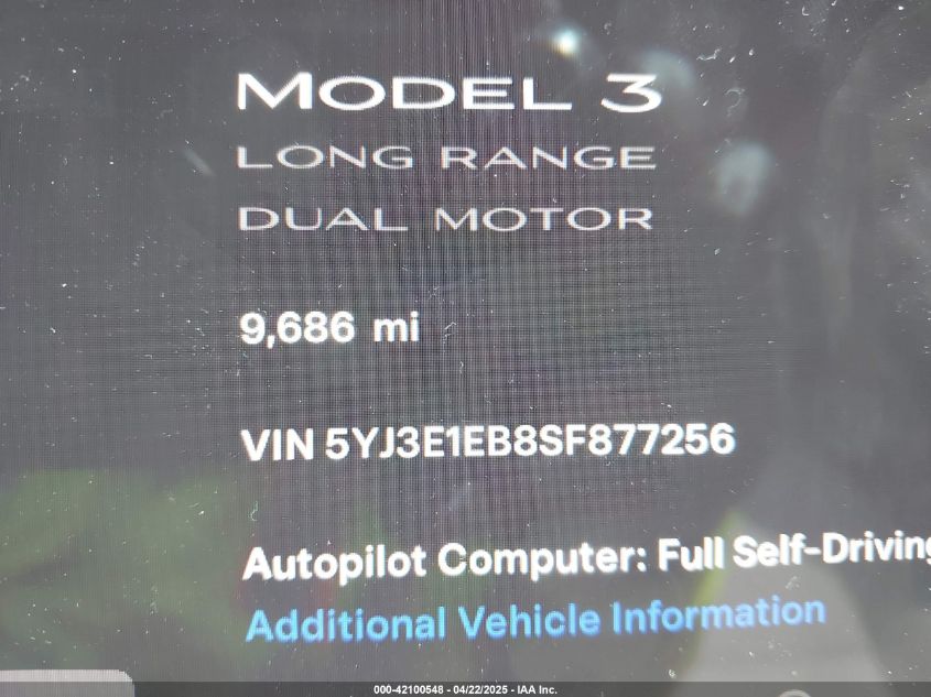 2025 TESLA MODEL 3 | 5YJ3E1EB8SF877256