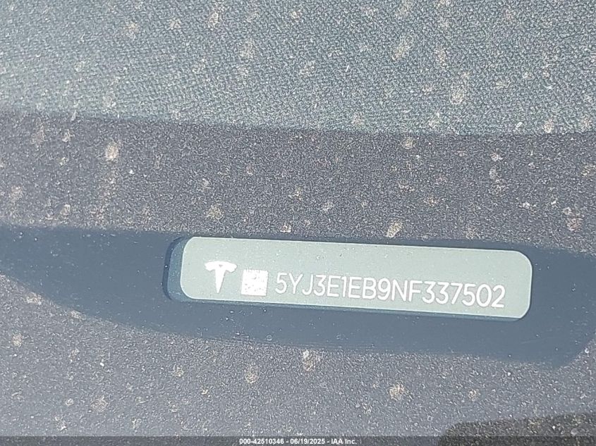 2022 TESLA MODEL 3 | 5YJ3E1EB9NF337502