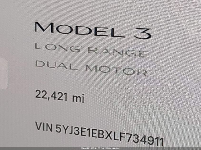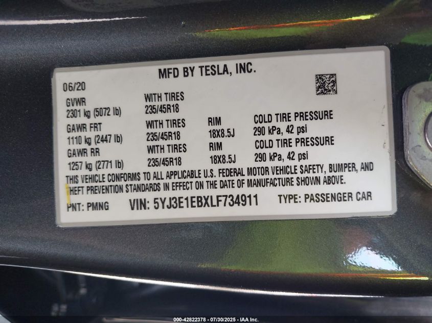 2020 TESLA MODEL 3 | 5YJ3E1EBXLF734911