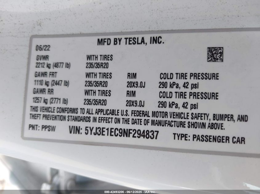 2022 TESLA MODEL 3 | 5YJ3E1EC9NF294837