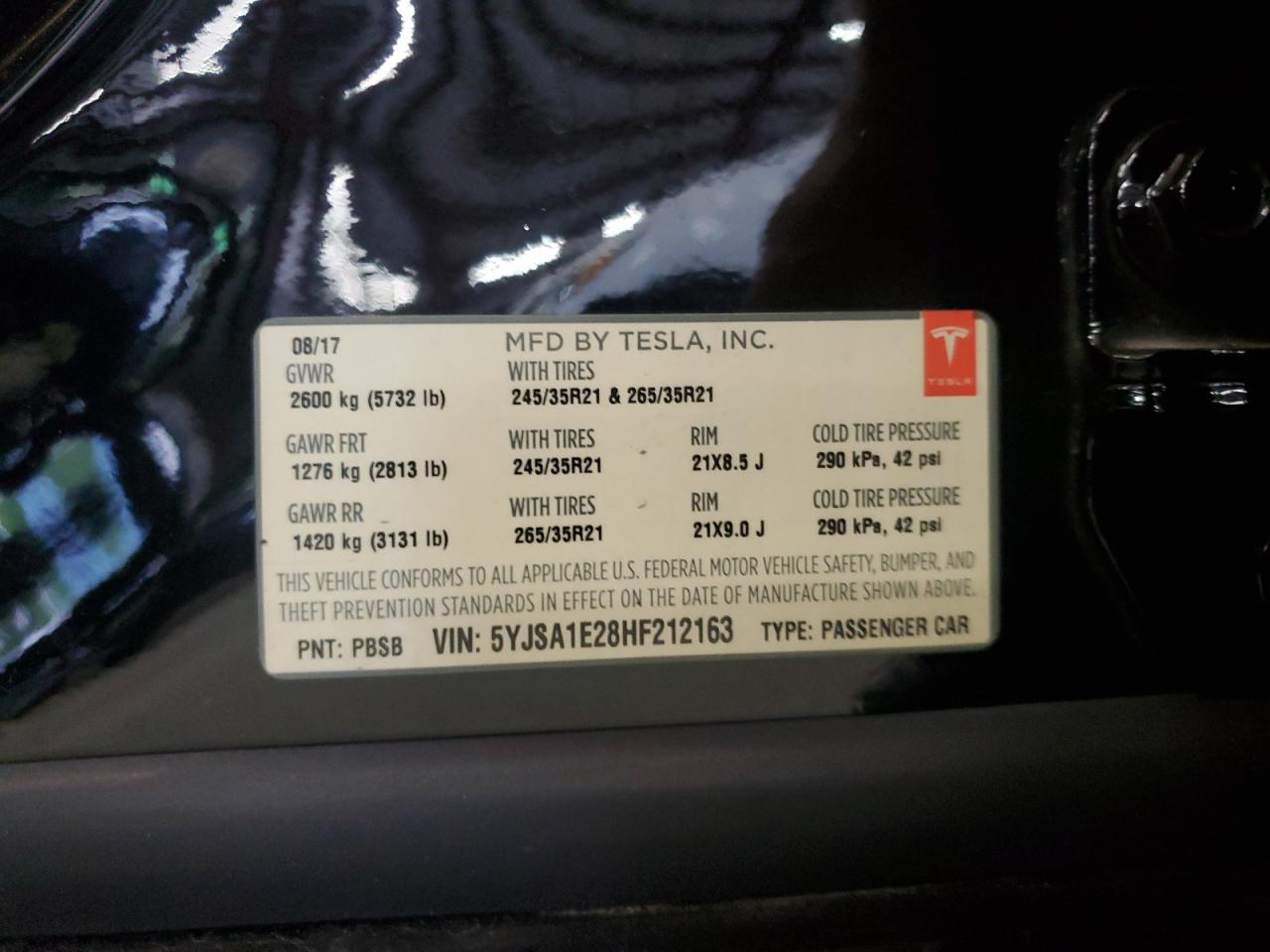 2017 TESLA MODEL S | 5YJSA1E28HF212163