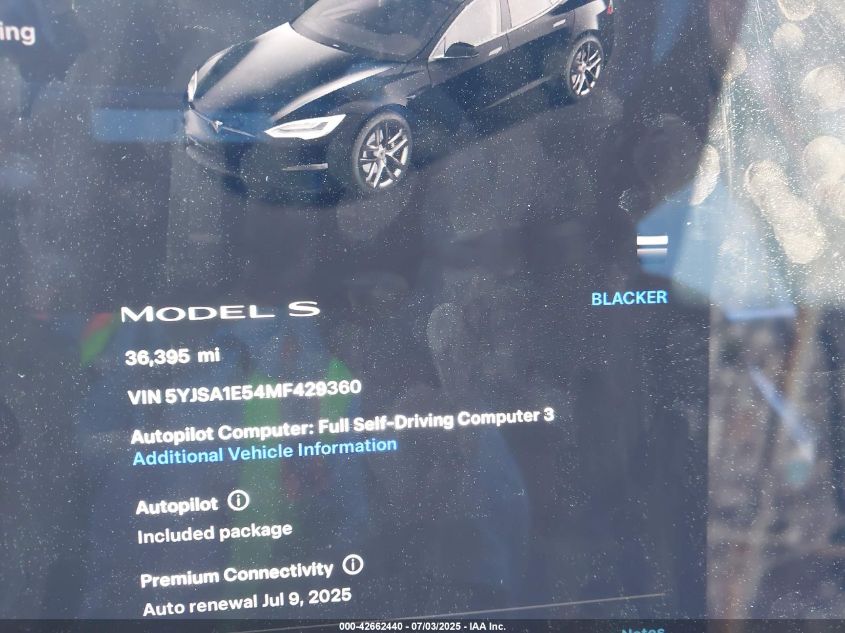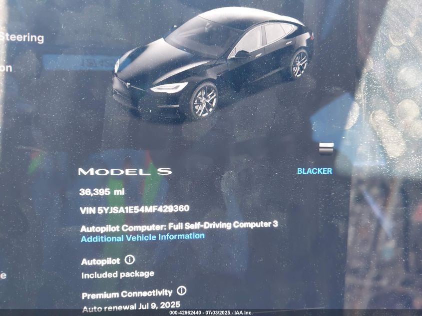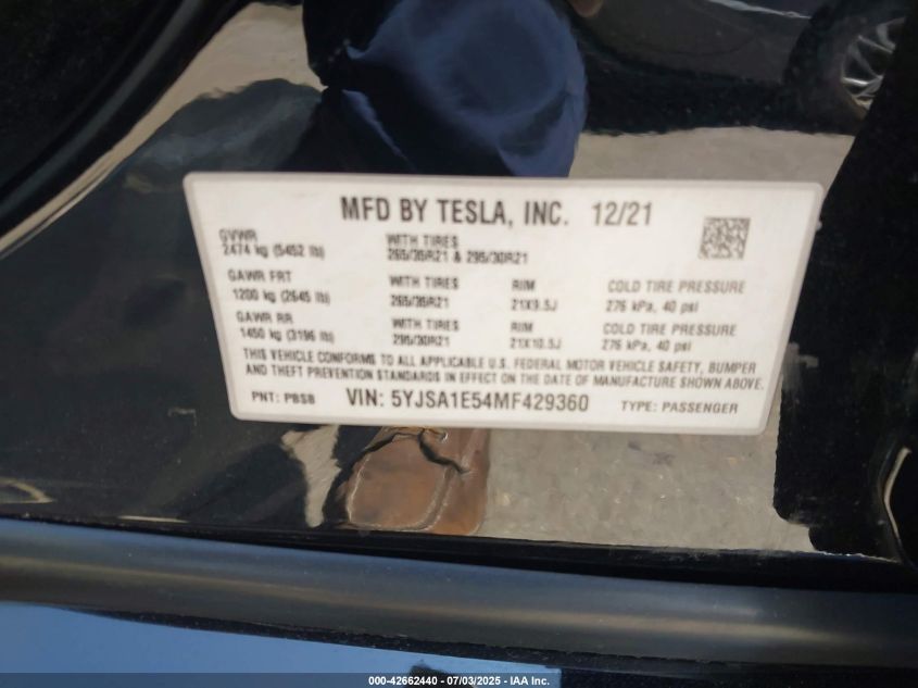 2021 TESLA MODEL S | 5YJSA1E54MF429360