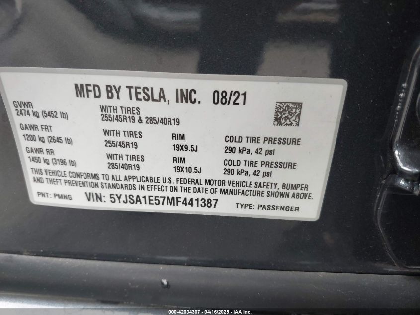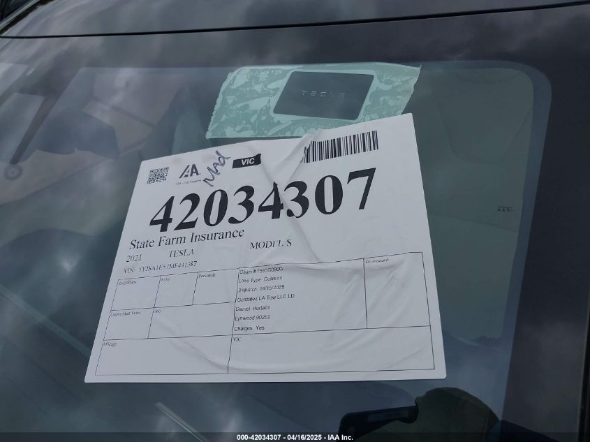 2021 TESLA MODEL S | 5YJSA1E57MF441387
