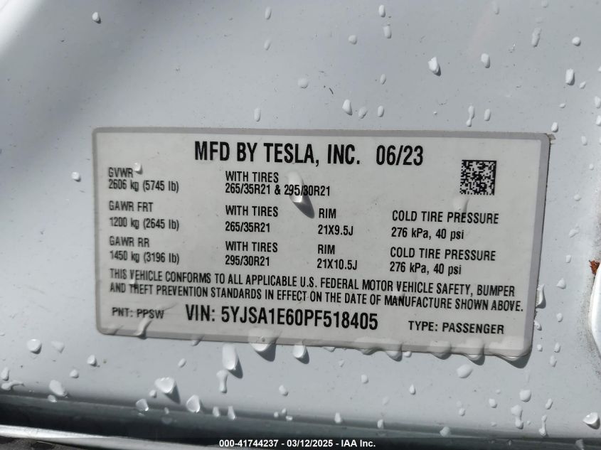 2023 TESLA MODEL S | 5YJSA1E60PF518405