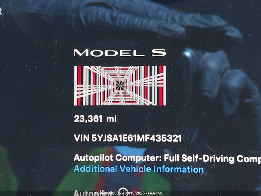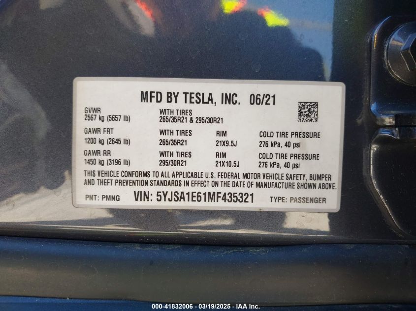 2021 TESLA MODEL S | 5YJSA1E61MF435321