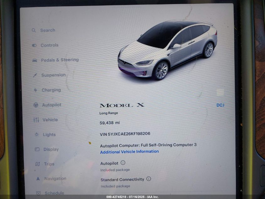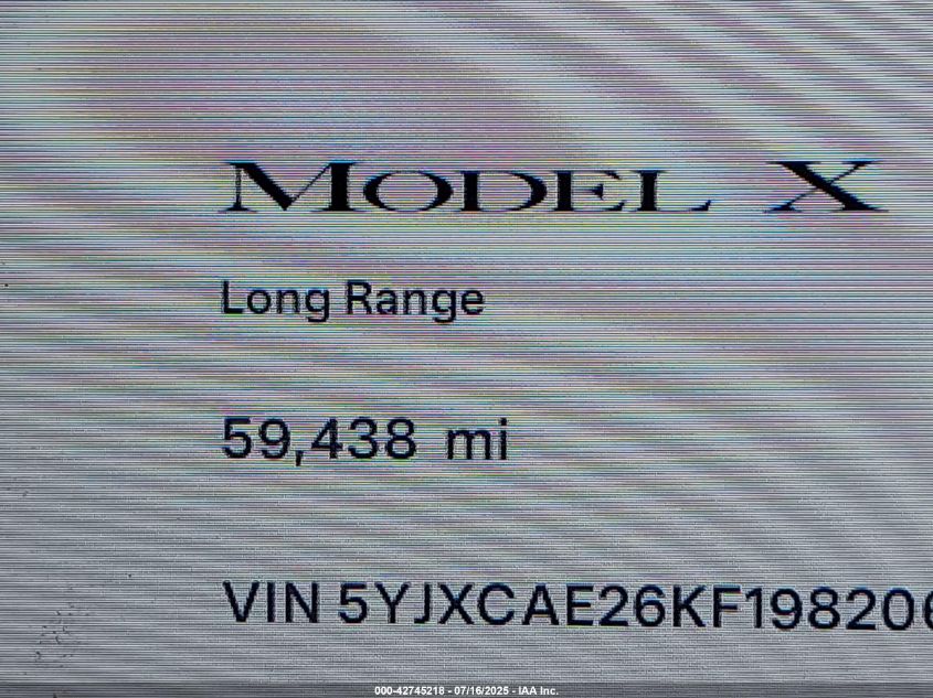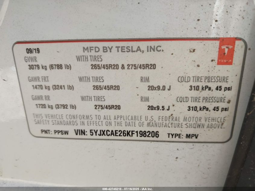 2019 TESLA MODEL X | 5YJXCAE26KF198206