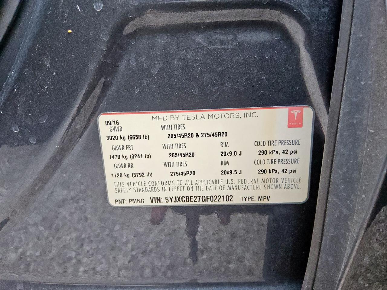 2016 TESLA MODEL X | 5YJXCBE27GF022102