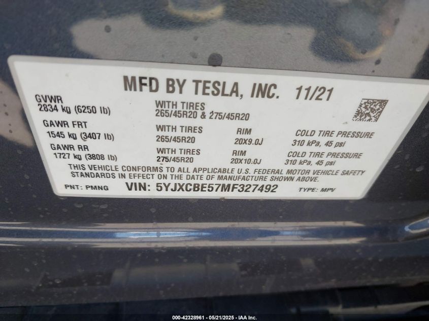 2021 TESLA MODEL X | 5YJXCBE57MF327492