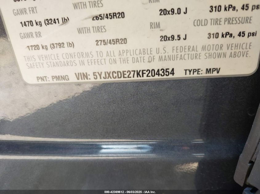 2019 TESLA MODEL X | 5YJXCDE27KF204354