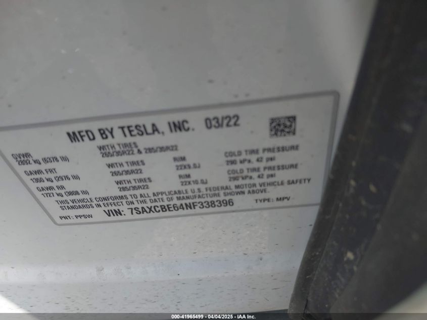 2022 TESLA MODEL X | 7SAXCBE64NF338396