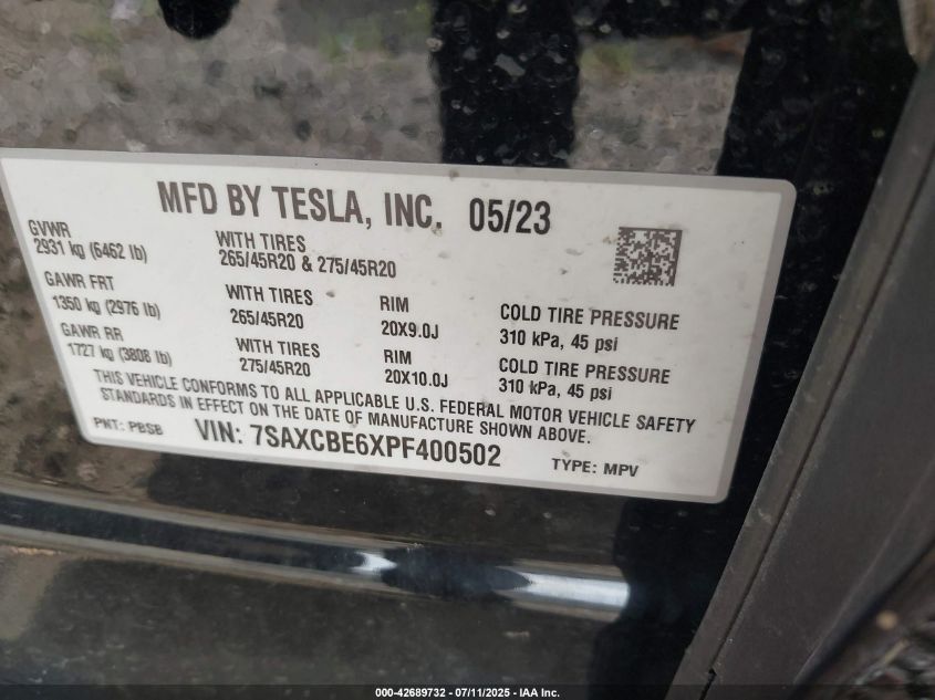 2023 TESLA MODEL X | 7SAXCBE6XPF400502