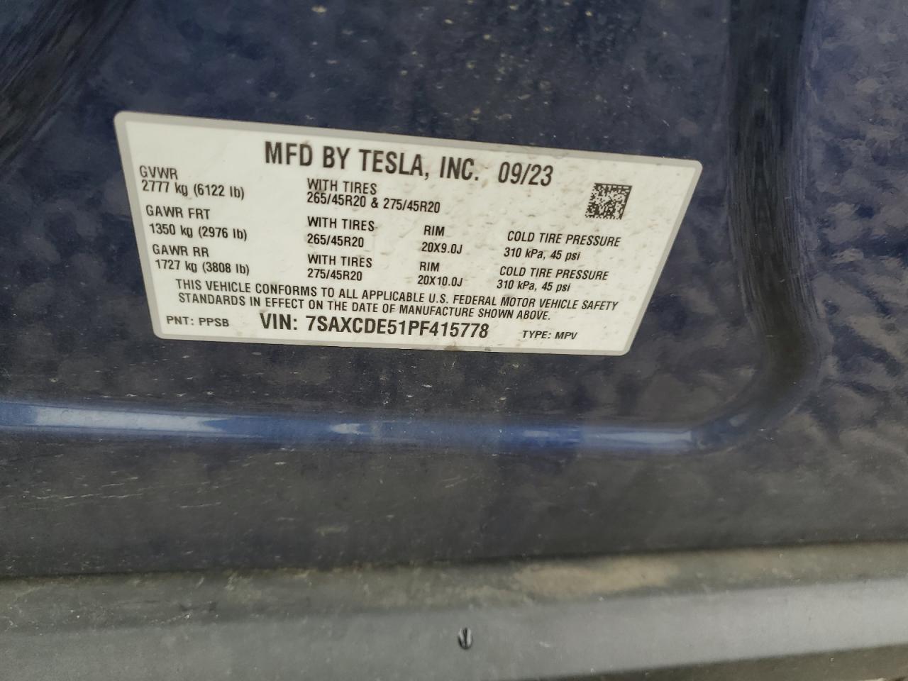 2023 TESLA MODEL X | 7SAXCDE51PF415778