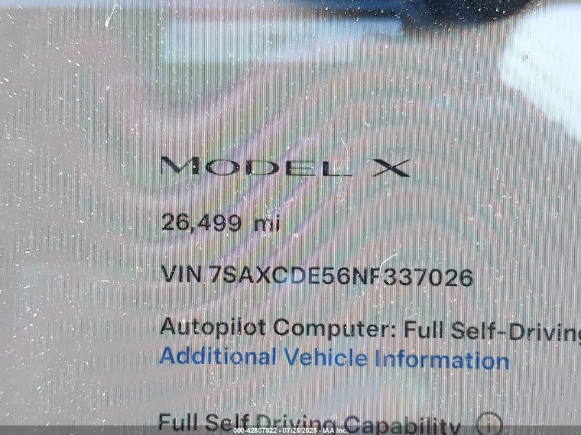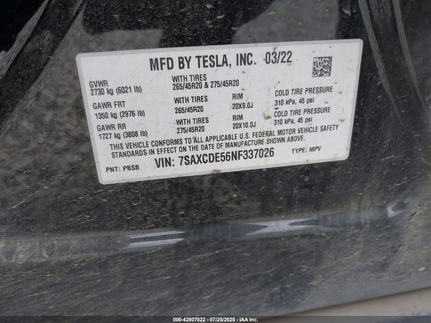 2022 TESLA MODEL X | 7SAXCDE56NF337026