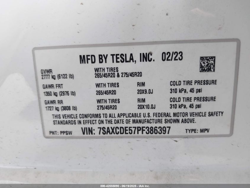 2023 TESLA MODEL X | 7SAXCDE57PF386397