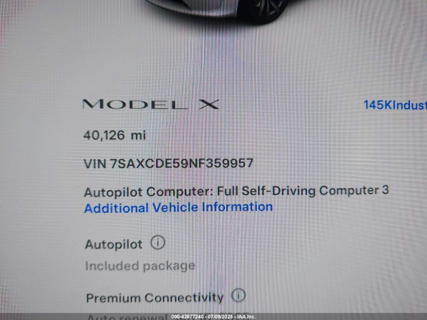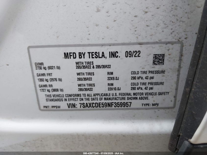 2022 TESLA MODEL X | 7SAXCDE59NF359957