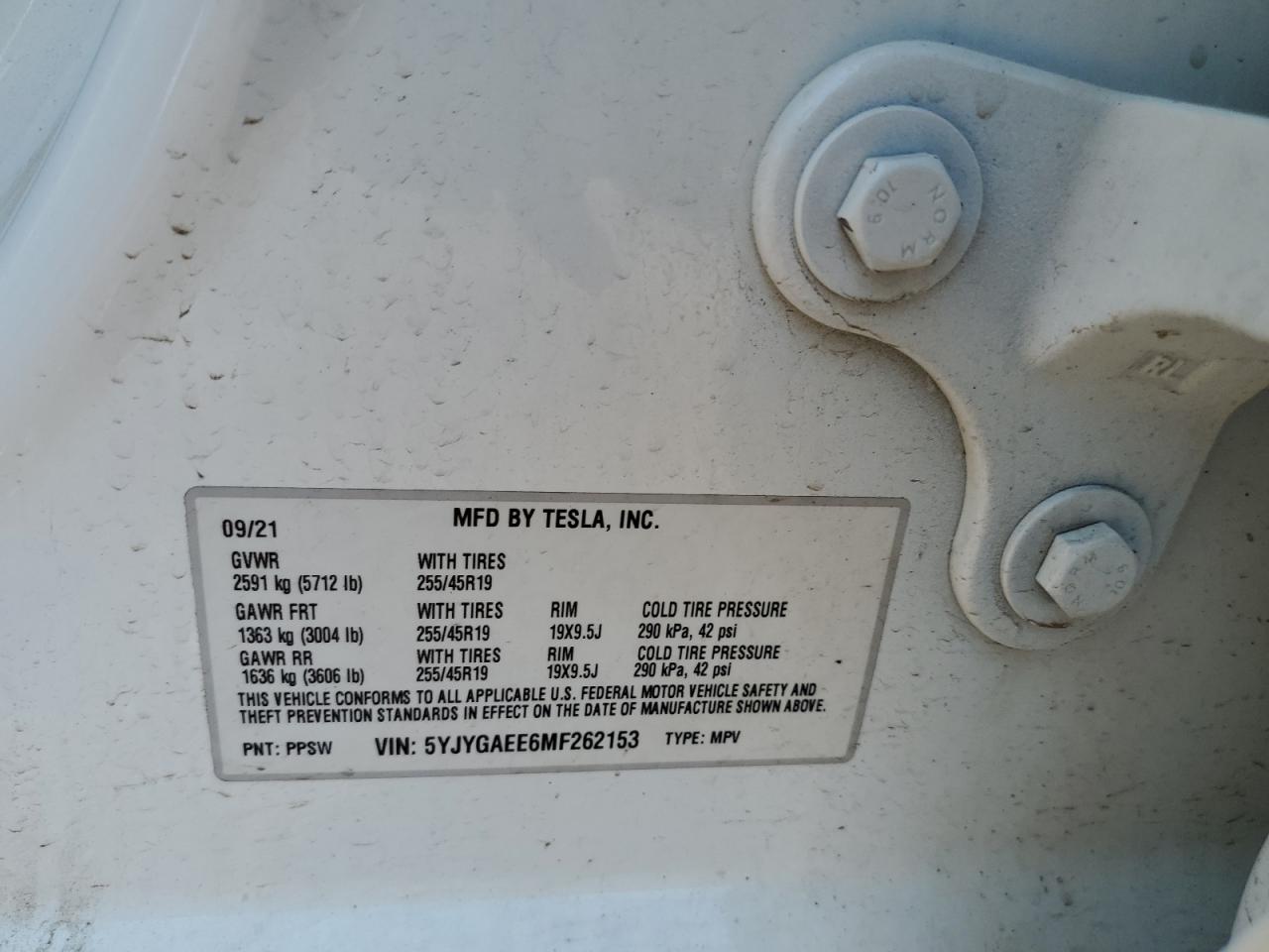 2021 TESLA MODEL Y | 5YJYGAEE6MF262153