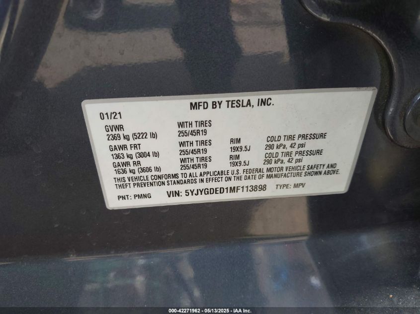 2021 TESLA MODEL Y | 5YJYGDED1MF113898